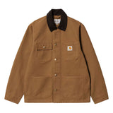 La veste 'Michigan Coat' de chez Carhartt est confectionné dans une toile robuste Dearborn de 12 oz (340 g) qui s'assouplira progressivement avec le temps. Les poches plaquées à l'avant ainsi que le col en velours côtelé offrent du relief tandis que les coutures en triple point assurent la durabilité du vêtement. L'étiquette carrée cousue à l'avant complète le design.