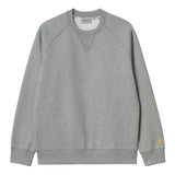 Le Carhartt WIP Chase Sweatshirt – Grey Heather/Gold offre un mix efficace entre confort premium et robustesse. Conçu en coton brossé épais, il présente une coupe regular stable et un logo brodé doré emblématique. Une pièce polyvalente, durable et parfaitement adaptée au quotidien comme au layering.