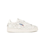 Step out in style with the Autry Medalist Low “Patent Flower White”, a premium women’s sneaker crafted in glossy white patent leather, adorned with delicate hand-cut floral appliqués for an elegant, artistic touch. The classic low-top silhouette combines vintage ’80s tennis inspiration with modern flair: perforated toe ventilation, padded collar, flat cotton laces, and a cushioned rubber sole (2.5-3.5 cm) for all-day comfort. Perfect for those who want a bold statement without sacrificing comfort or heritage style.