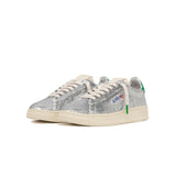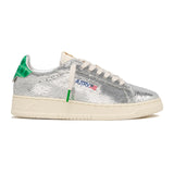 Turn heads with the Autry Dallas Glitter Silver/Green, a statement sneaker entirely covered in sparkling silver glitter, finished with a bold green heel tab for a striking contrast. Blending retro tennis inspiration with glamorous style, this low-top design features premium leather details, cushioned lining, and a durable rubber sole for everyday comfort. The perfect mix of shine, sport, and sophistication.