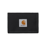 Le portefeuille 'Alec' de Carhartt est conçu en toile Duck, un tissu résistant composé de polyester recyclé. Déperlant, il dispose d'un compartiment à billets zippé, six fentes pour cartes ainsi qu'un porte-monnaie en Velcro® derrière lesquels se trouve des compartiments cachés. Une étiquette carrée cousue sur le devant complète le design.