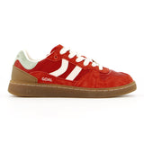 The Goal is a suede sports shoe with contrasting color details. Leather and preformed tongue with figured padding. Interchangeable two-tone flat cotton laces. Lightly padded collar. The front part has a stitching reinforcement. Flexible rubber/rubber sole that provides durability and grip.